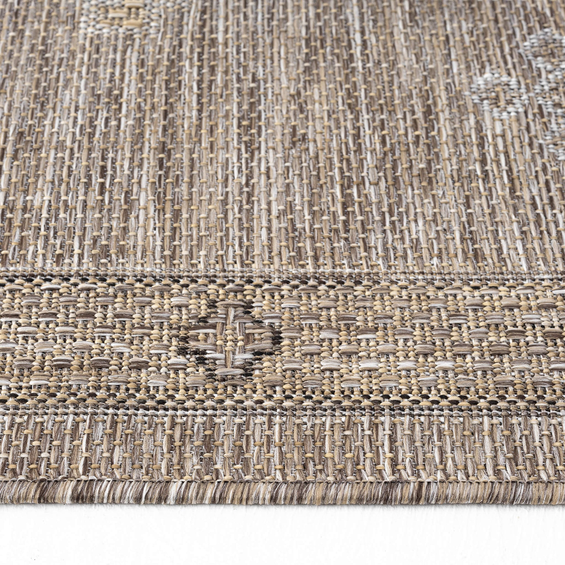 This flat-weave, indoor/outdoor collection has a subdued colour palette for versatility, and is power loomed from polypropylene with a water-resistant base. This budget-friendly range, while complementing interior spaces, is also suitable for outdoor use in covered patios, balconies, terraces, and courtyards. This highly decorative collection also has quality finishes including all-side binding, and contains shed-resistant and anti-static properties for easy maintenance.