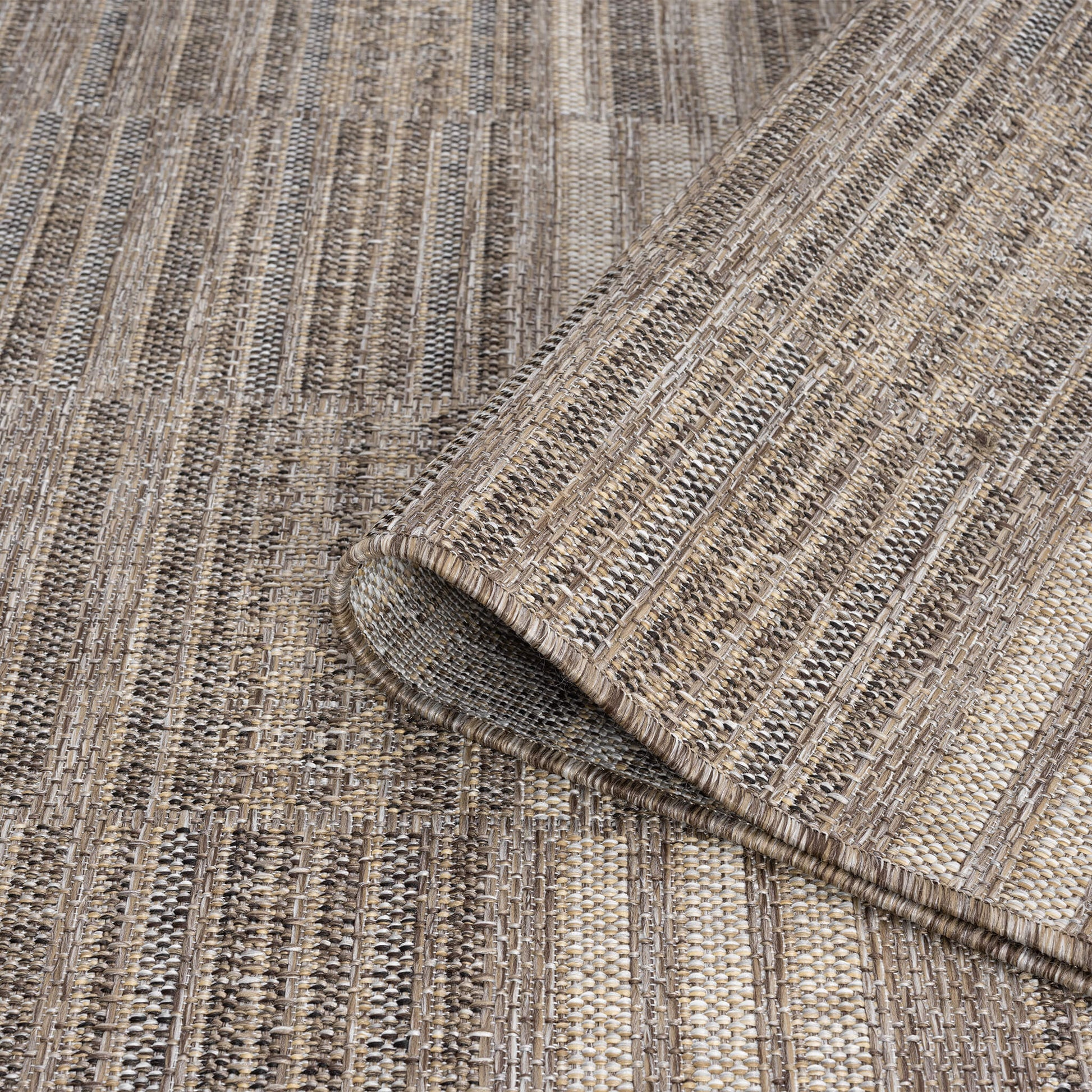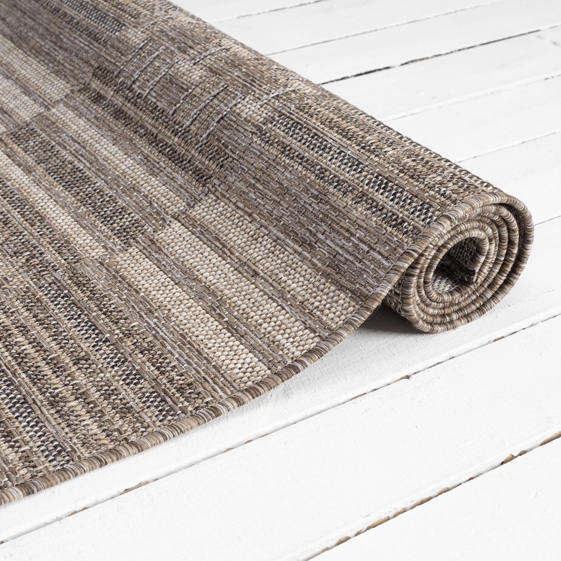 This flat-weave, indoor/outdoor collection has a subdued colour palette for versatility, and is power loomed from polypropylene with a water-resistant base. This budget-friendly range, while complementing interior spaces, is also suitable for outdoor use in covered patios, balconies, terraces, and courtyards. This highly decorative collection also has quality finishes including all-side binding, and contains shed-resistant and anti-static properties for easy maintenance.
